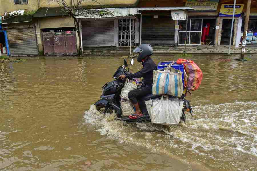 Earlier in the morning, Housing and Urban Affairs Minister Jayanta Malla Baruah visited some flooded areas by riding a two-wheeler.