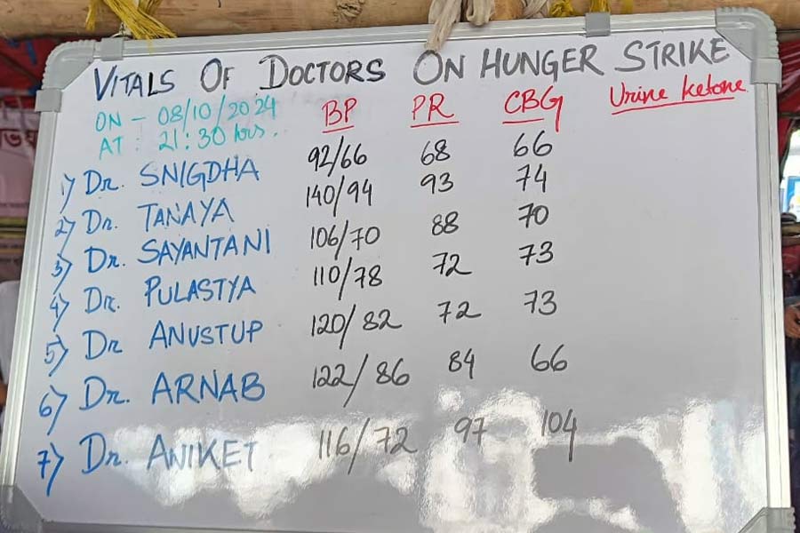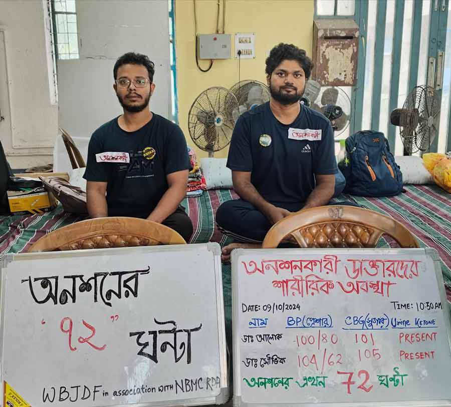 The junior doctors on hunger strike in Calcutta to demand a clean-up of the public healthcare system in Bengal in the aftermath of the rape and murder of a postgraduate trainee doctor at RG Kar Medical College and Hospital have received support from their compatriots across the country.