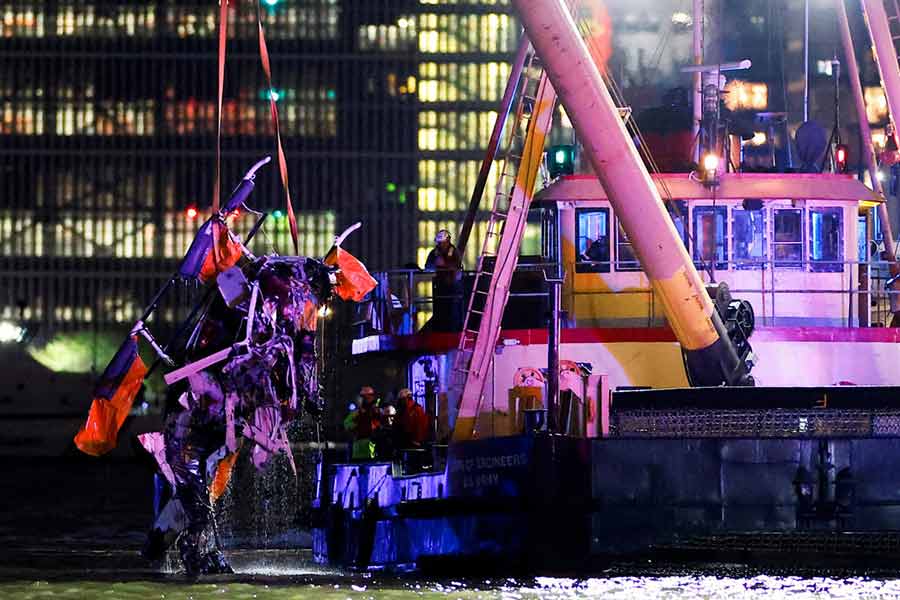 Mayor Eric Adams said a tourist helicopter plummeted upside down into New York’s Hudson River killing all six on board, including a Spanish family with three children and the pilot.
