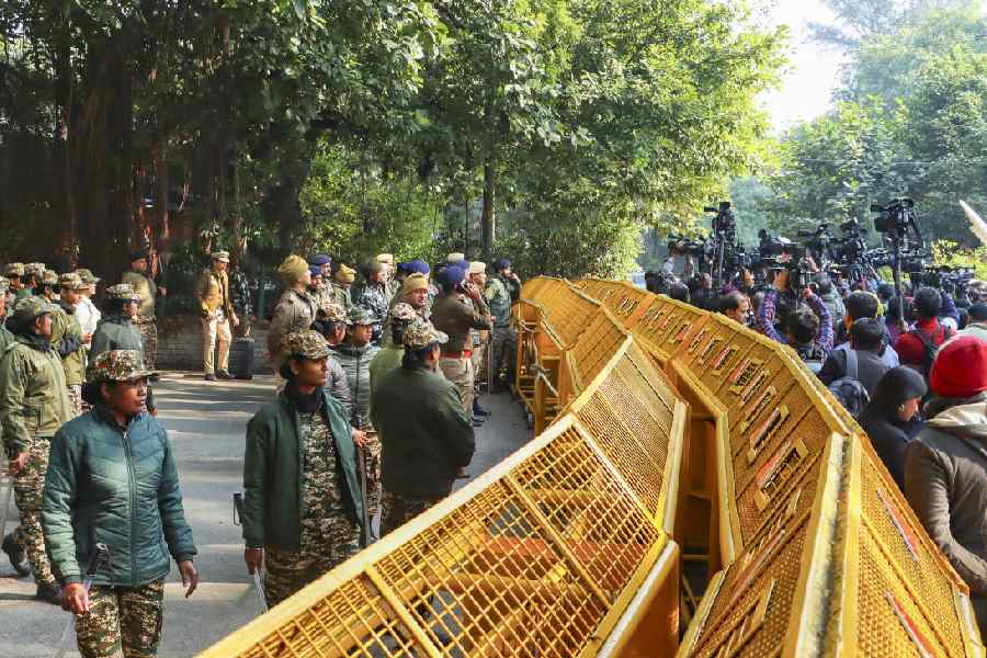 Police set up barricades and deployed personnel in front of the bungalow, preventing the AAP leaders from entering the premises.
