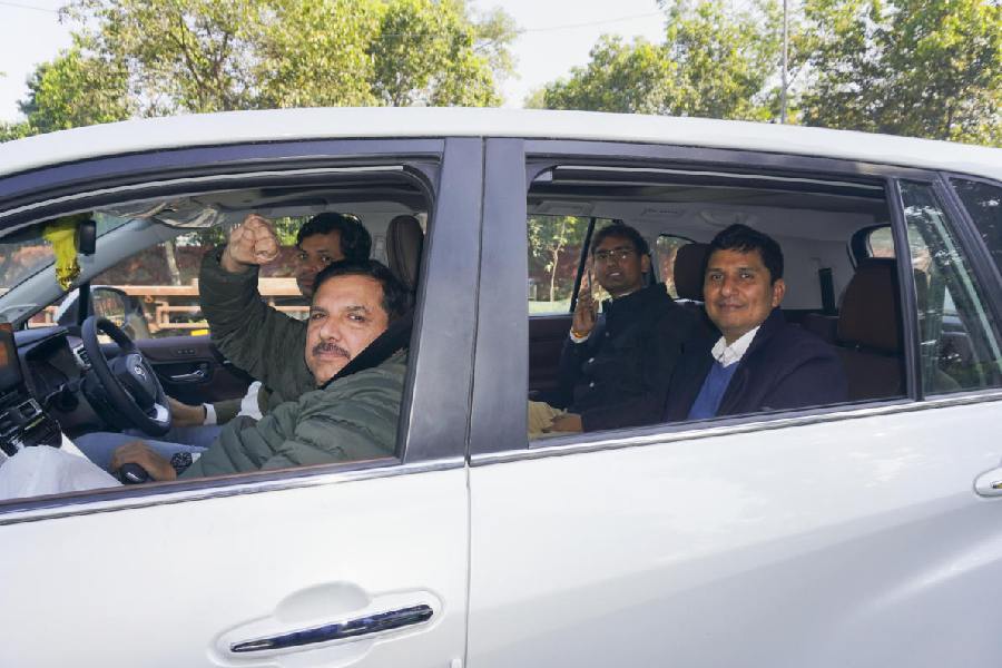 AAP leaders Sanjay Singh and Saurabh Bhardawaj staged a sit-in outside the Flagstaff bungalow after they were not allowed to enter it, which they had invited the media to tour with them in a bid to counter the BJP's "Sheesh Mahal" jibes.