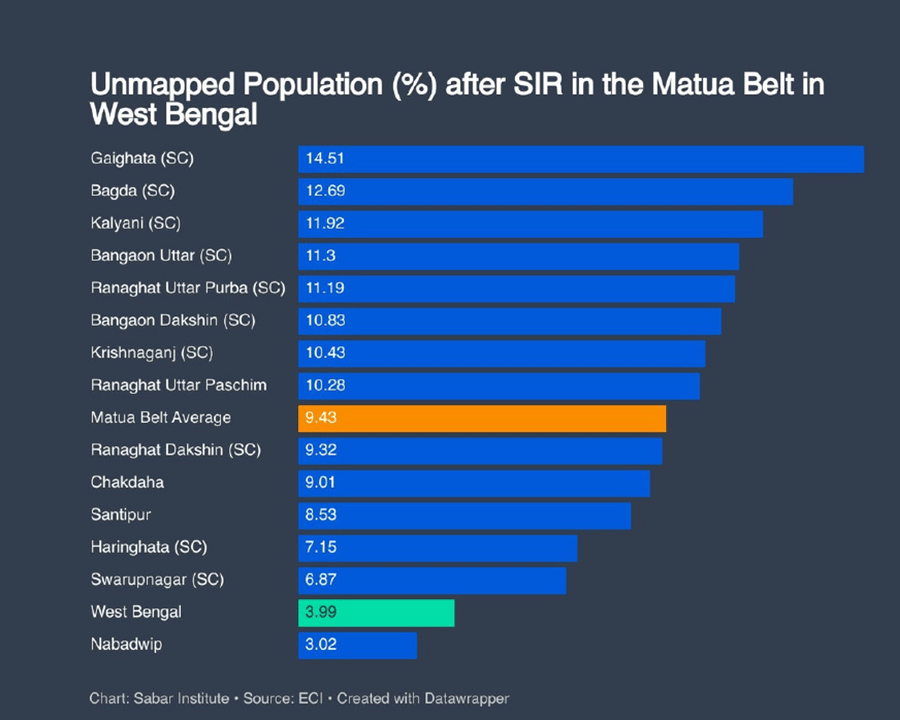 The hit has been the worst in places like Malda and Murshidabad, per the APCR. These zones already grapple with river erosion and displacement. The SIR has amplified distress. Persistent re-check requests, opacity around erasure reasons, and instances of family members vanishing while their kin remain have turned routine administrative exercise into a survival struggle, the speakers at the discussion said.