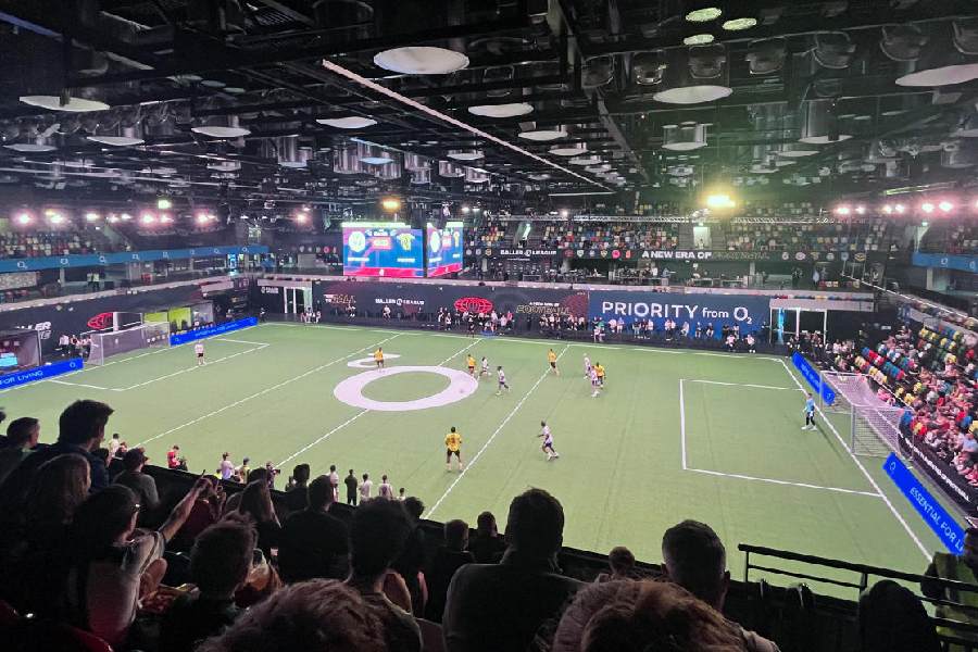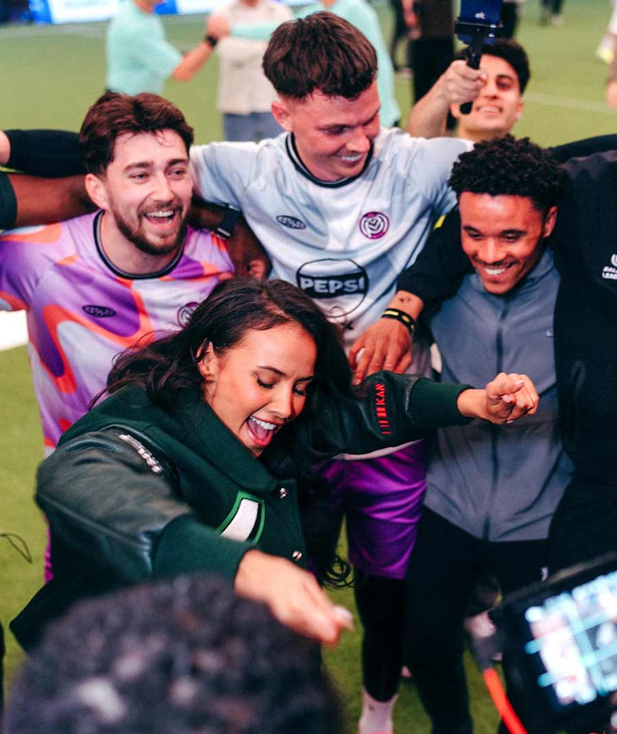 An enthusiastic announcer rallies the crowd inside London's Copper Box Arena for a noisy five-second countdown to Santan FC vs MVPs United, the former managed by rapper Dave, the latter by popular player Alisha Lehmann and TV host Maya Jama.