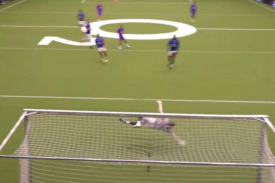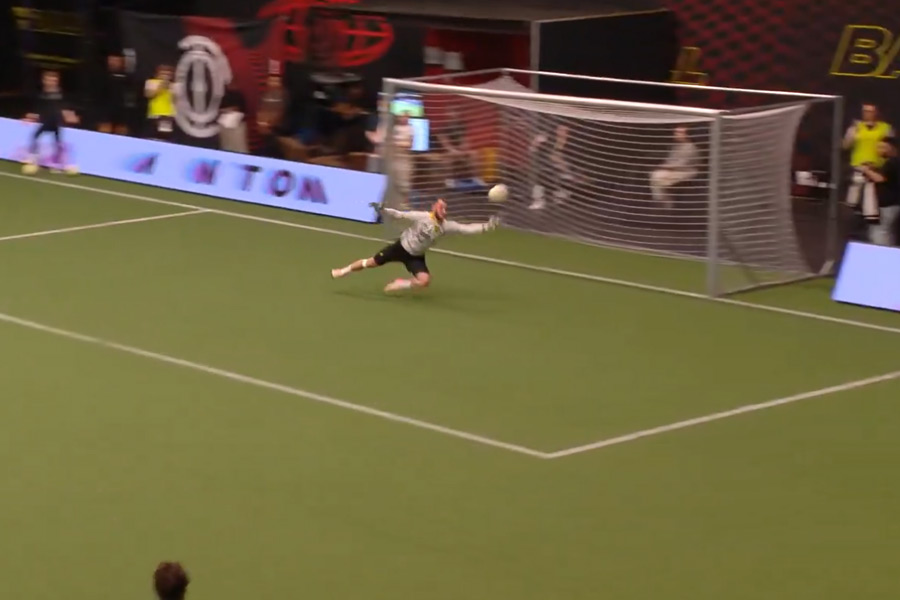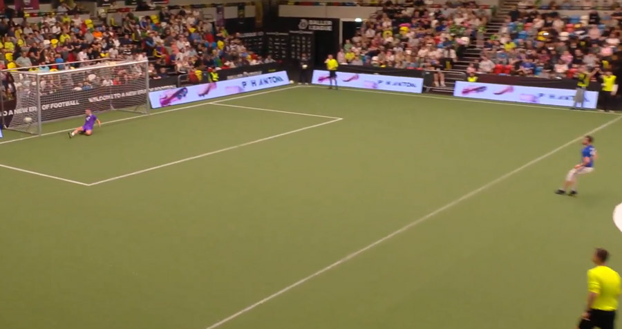 Twelve minutes later, it is time for a twist - the "Plus One" rule reduces the teams to one-versus-one plus goalkeepers with the rest allowed back after next goals.