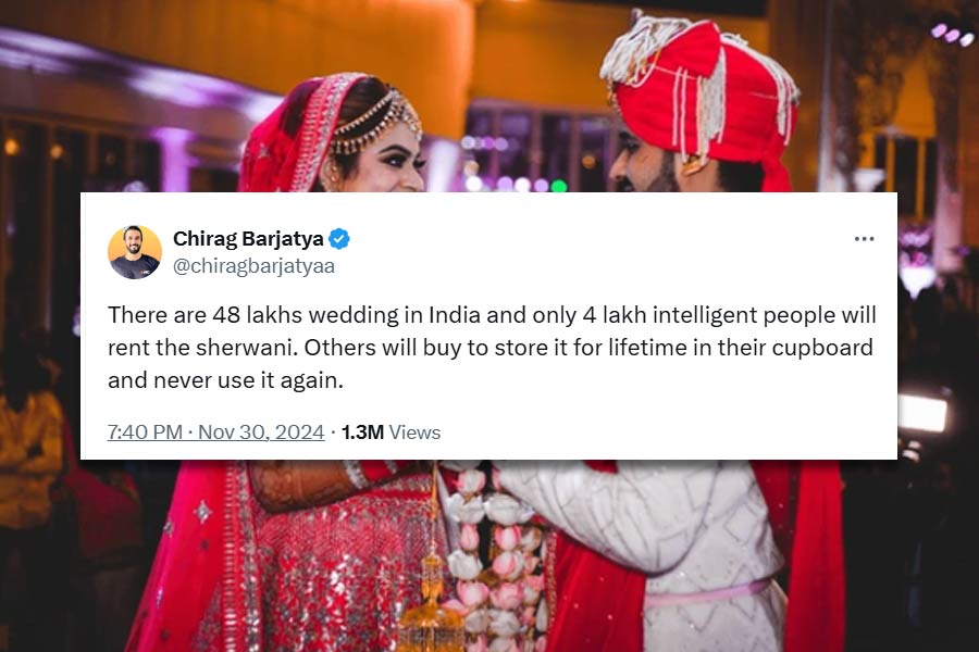 "There are 48 lakh weddings in India, and only 4 lakh intelligent people will rent the sherwani. Others will buy to store it for a lifetime in their cupboard."