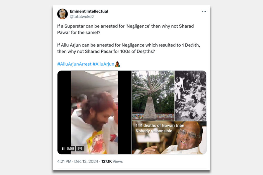 A user drew comparisons between Allu Arjun’s arrest for negligence and politicians escaping accountability. He posted: "If a superstar can be arrested for negligence leading to one death, why not Sharad Pawar for hundreds of deaths caused under his watch? Accountability shouldn’t depend on who you are."