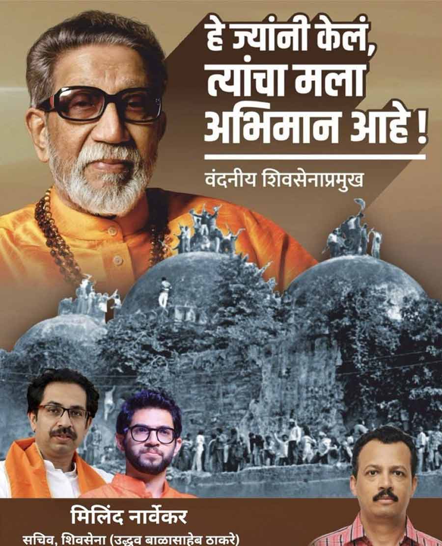 Narvekar posted a photo of the demolition of the mosque accompanied by Shiv Sena founder Bal Thackeray's quote: "I am proud of those who did this".