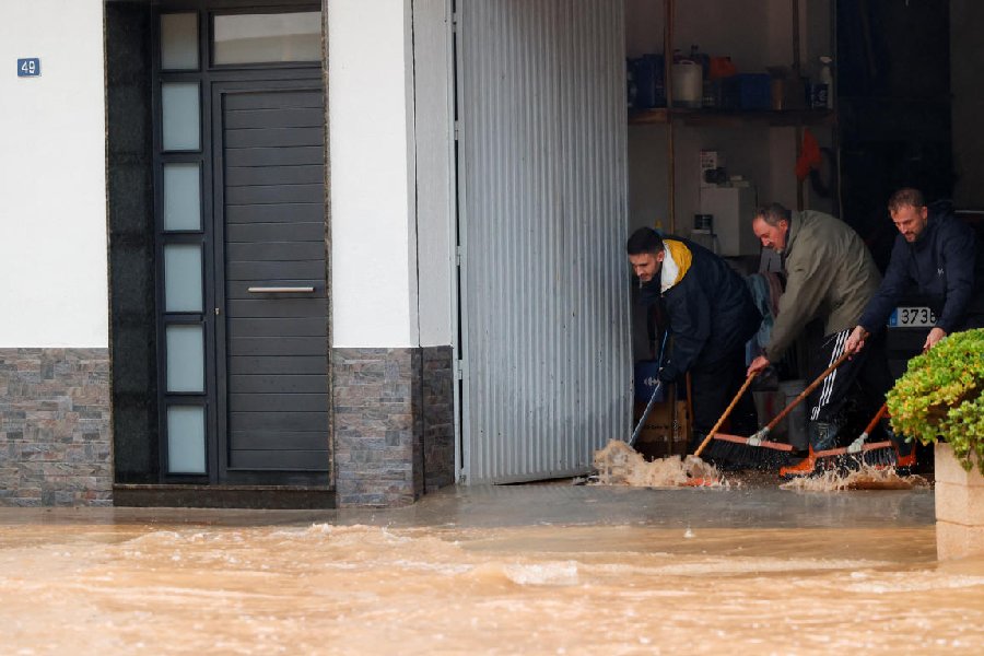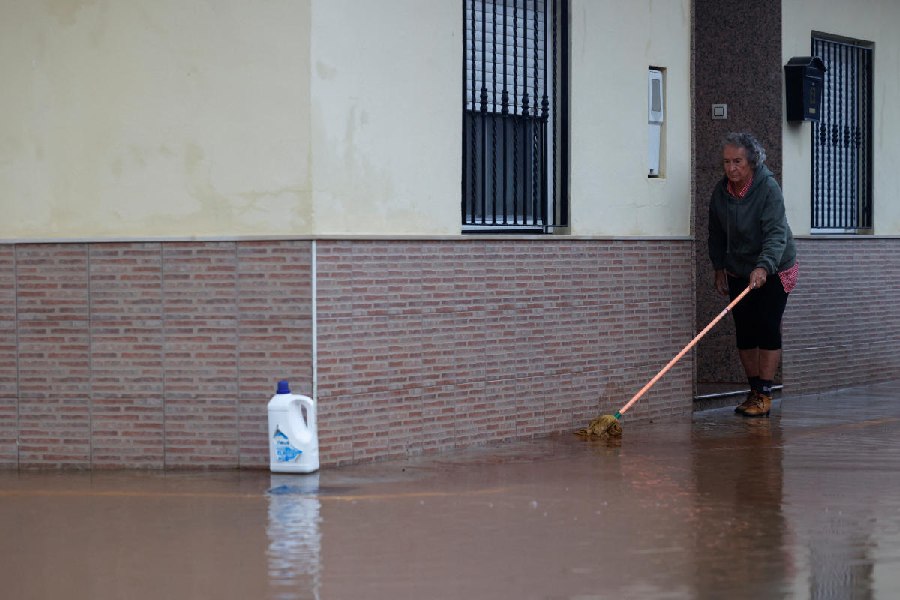 Spain's state weather agency AEMET declared a red alert in the eastern Valencia region and the second-highest level of alert in parts of Andalusia in the south, where a train derailed due to the heavy rainfall, although no one was injured.