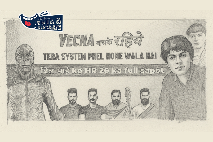 The poster read: “Vecna bach ke rahiye. Tera system fail hone wala hai.