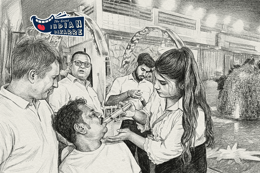 But India’s luxury wedding universe has decided this is merely an appetiser. The main course? IV bars.