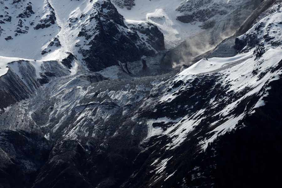 The degeneration of part of the Birch glacier in the Loetschental valley occurred after sections of the mountain behind it began breaking off in the past few days, and ultimately brought down much of the ice mass with it.