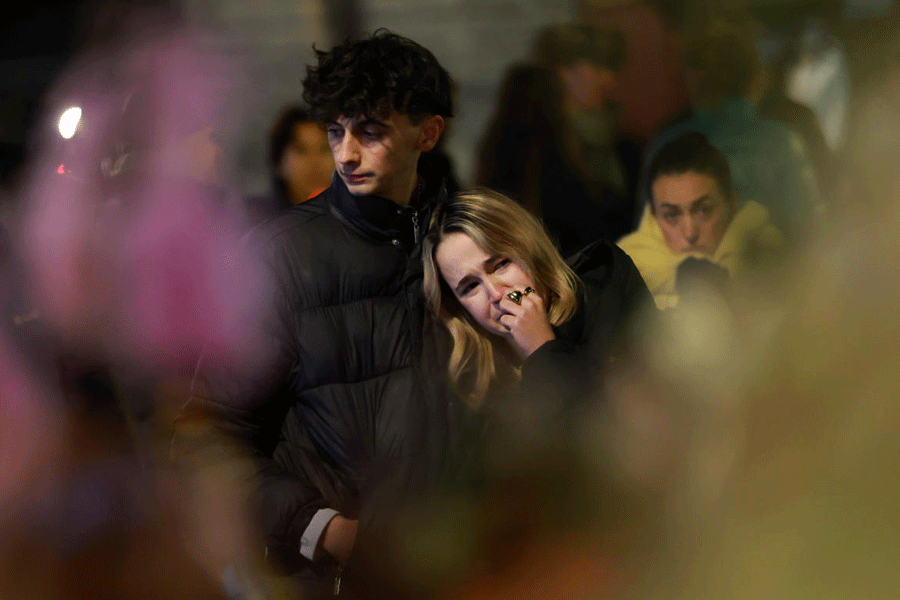 Dozens of people left flowers or lit candles on a makeshift altar at the top of the road leading to the bar which police had cordoned off. Some cried, others quietly hugged one another.