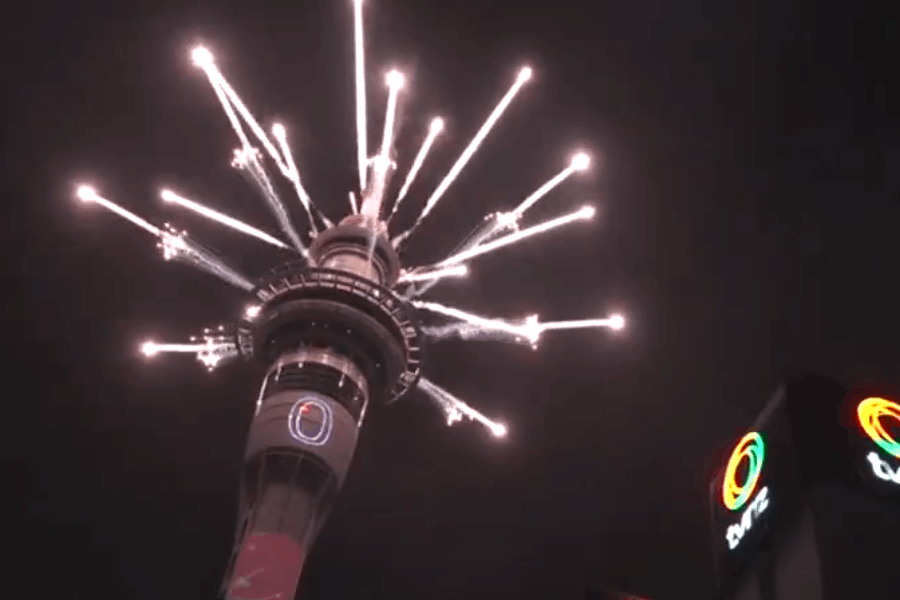 The five-minute display included 3,500 fireworks launched from various floors of the 240-meter Sky Tower, the country’s tallest structure.