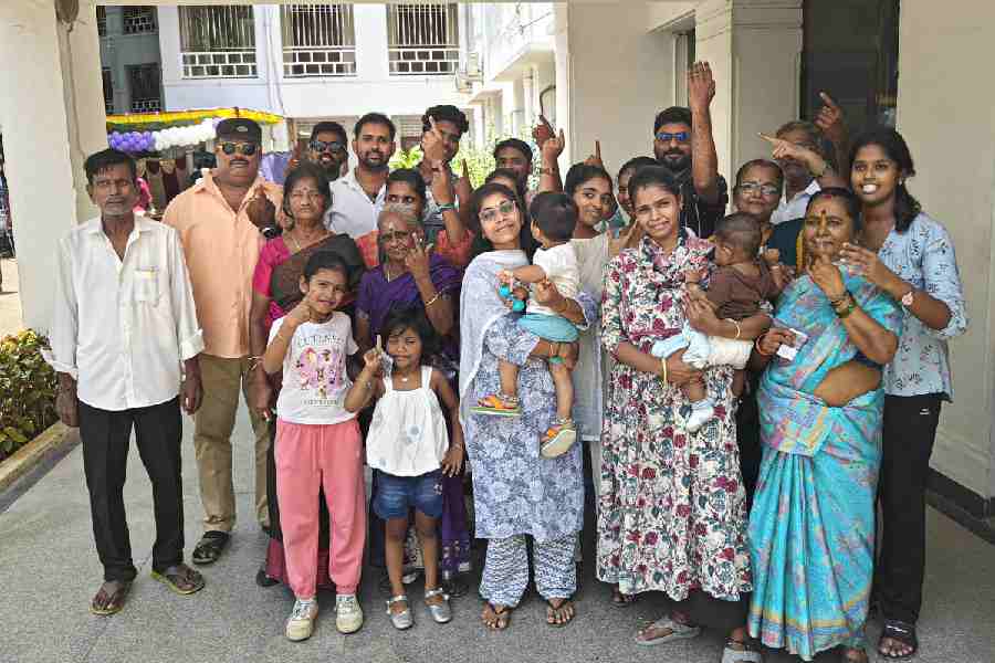 Members of a three-generation family show their inked fingers after casting votes at a polling station during the Tamil Nadu Assembly elections, in Chennai, Thursday, April 23, 2026. PTI picture