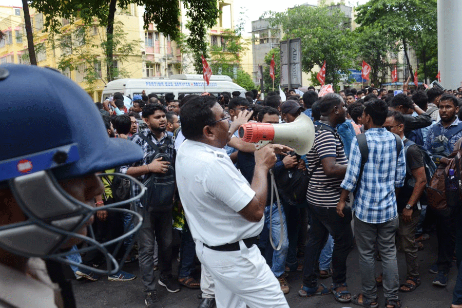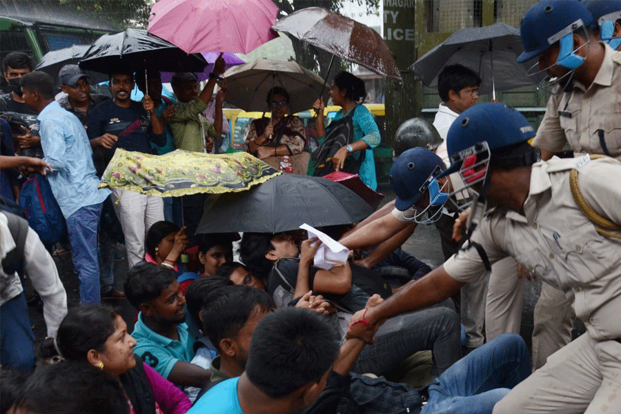Several aspirants were detained at the gate of Karunamoyee metro station, but some dodged the police and started the demonstrations.