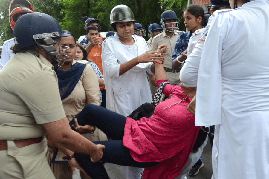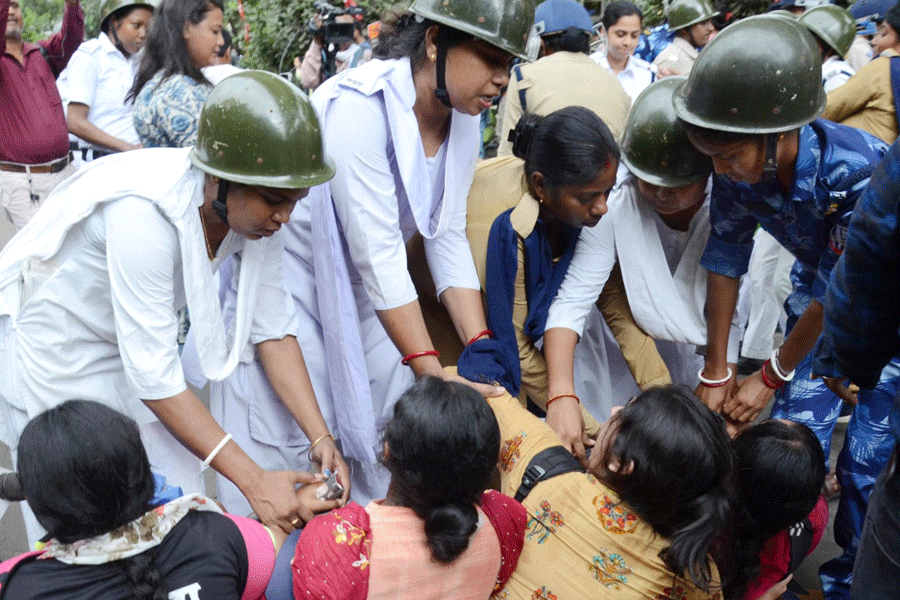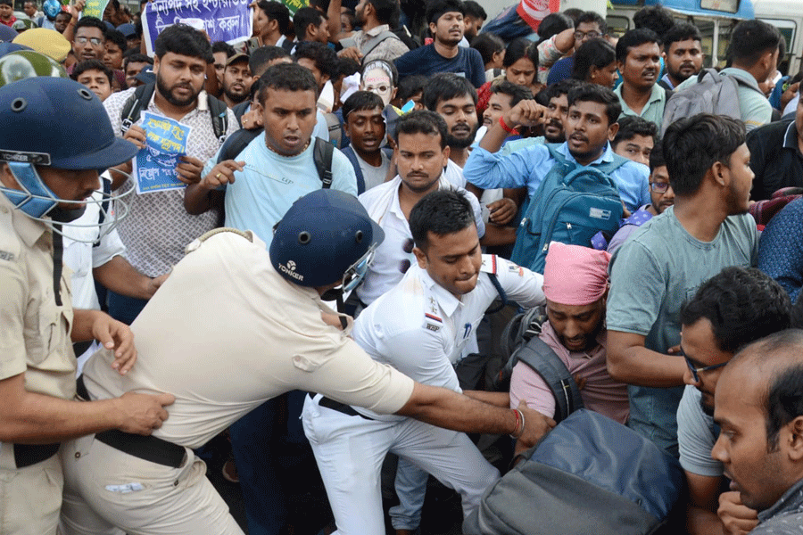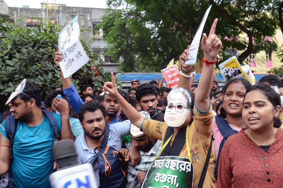 The demonstrators claimed that though they cleared the Teachers' Eligibility Test (TET) 2022, the Trinamool Congress (TMC) government has failed to start the recruitment process, with nearly 50,000 primary teachers' posts lying vacant.