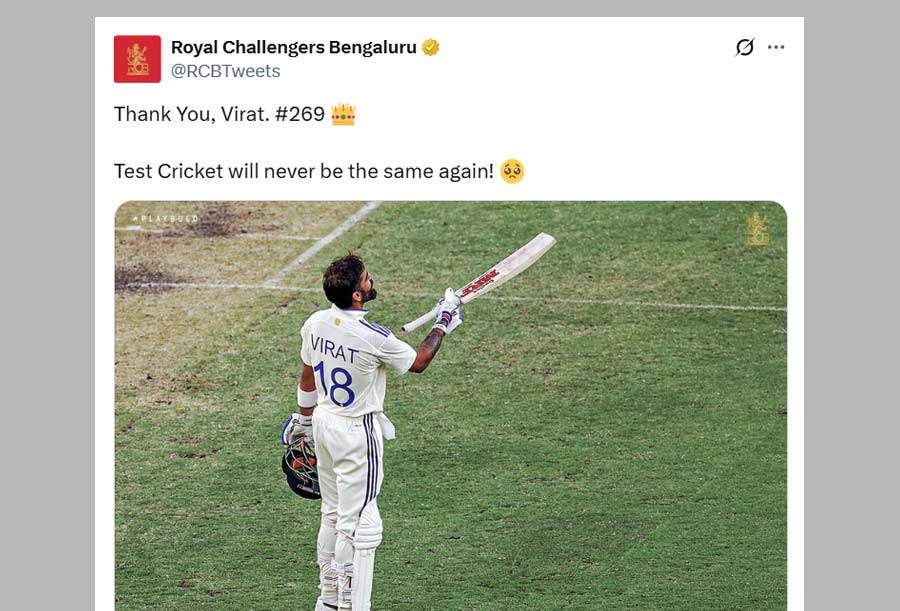Virat's IPL team RCB wrote "Test Cricket won't be the same."