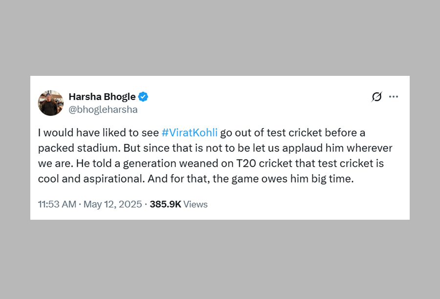 Taking to X, he wrote, "Biggest brand of the modern cricket era who gave it all for cricket’s oldest format. Test cricket owes that debt to Virat Kohli.