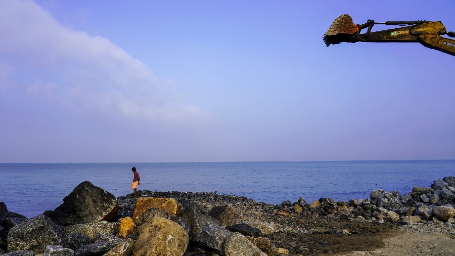 "DANGER. STAY OUT FROM SUSPENDED LOADS," warns a sign with an image of a stickman potentially being crushed by a tetrapod. With much of the first phase of the new sea wall completed in a 7-kilometre stretch from Chellanam harbour to Puthenthodu Beach, at least for now residents like Sebastian feel more secure. She and other family members living with her — a son, daughter-in-law and two grandchildren — are still processing painful memories from the cyclone that washed away their savings and many dreams.