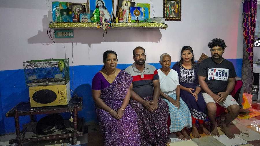Nearly two years ago, Mary Sebastian (center in the picture) was hoisted on a chair and carried by a policeman in waist-deep floodwaters, leaving behind her now damaged home where she had spent more than 70 years of her life. She never thought she would return. So, when Sebastian, now 85, recently recounted her experience during Cyclone Tauktae, which hammered parts of southern India in May 2021, she became emotional as the memories came rushing back. Having returned to the same tiny, tiled-roof home, she expressed hope that a sea wall being erected on the coast just in front of her house would check raging waves of the Arabian sea and keep her safe.