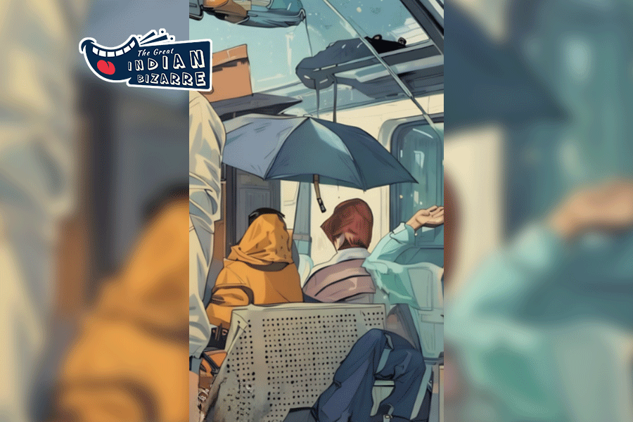 Then there was the Bongaon AC local where an elderly commuter decided he’d had enough of the chilly blast from the vents. His solution? Open an umbrella, inside the compartment.