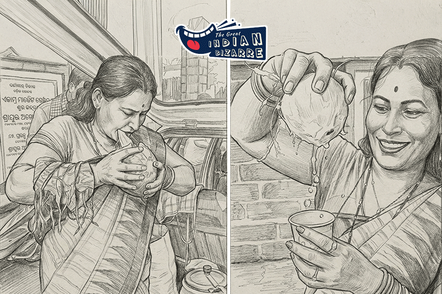 A clip shared by the Instagram page @india_eat_mania shows an Odia woman calmly doing what most of us wouldn’t attempt even in our wildest moods, peeling an entire green coconut using only her teeth.
