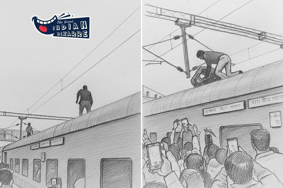 Uttar Pradesh briefly auditioned for a live-action version of Subway Surfers when a young man decided that sitting inside a moving train was far too mainstream. Instead, he chose the roof.