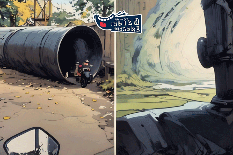 The clip, shared on Instagram, shows the makeshift tunnel segment sitting on the asphalt as two-wheeler vehicles go through it.