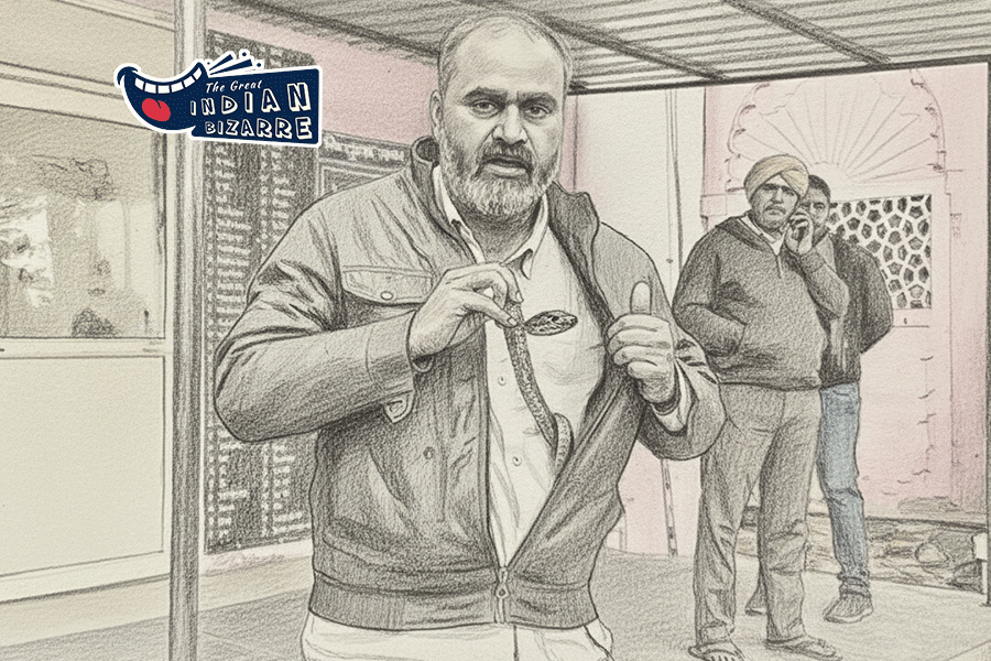There are many ways to say you are unwell. Most people bring medical reports but one man in Uttar Pradesh’s Mathura brought the problem itself.