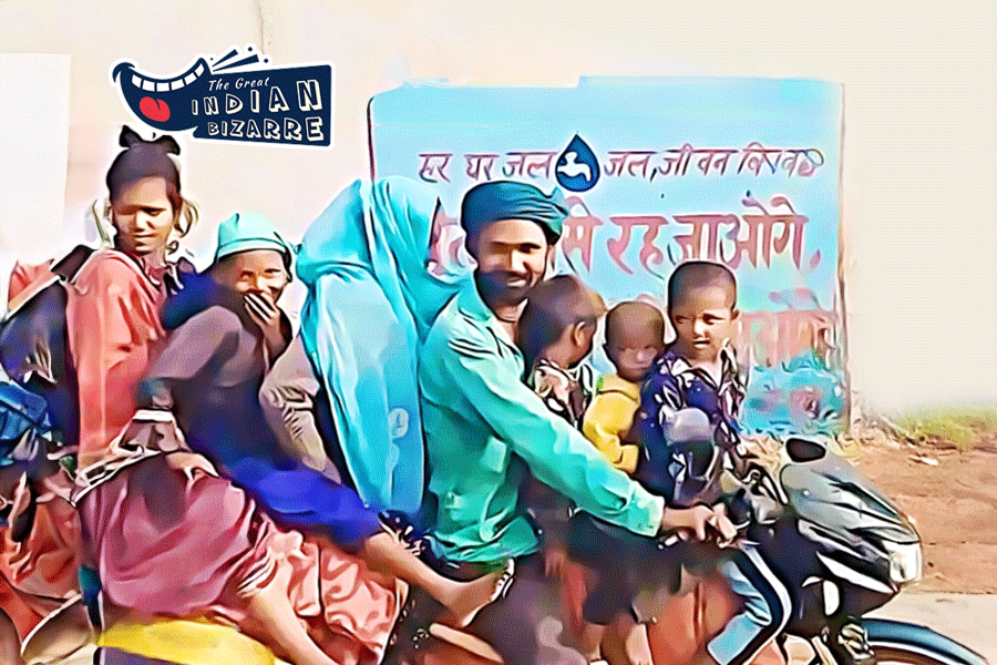 In an attempt to redefine "family bonding," a Shahjahanpur family decided to pile onto a single bike in UP’s Shahjahanpur.