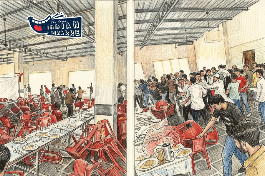In a now-viral video, people were seen hurling and breaking plastic chairs as chaos erupted across the venue — all of this over a disagreement about the distribution of chicken pieces with biryani.