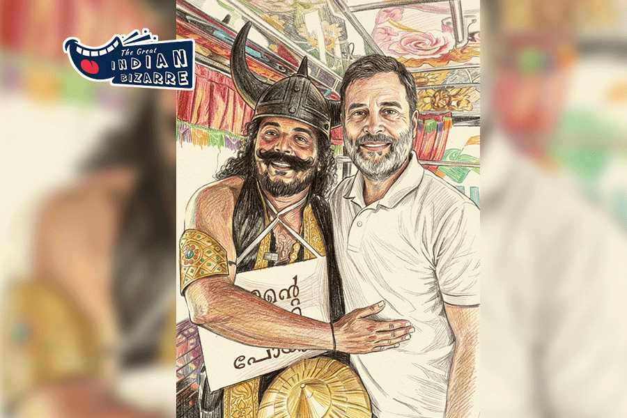 During a bus ride in Kerala’s Balussery, Congress leader Rahul Gandhi met ‘Yamaraj’, who appeared less than impressed.
