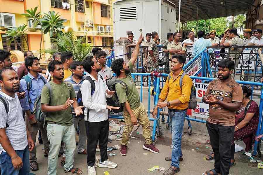 It was 34 degrees, with a few ice-cream, sugarcane juice and aam panna vendors milling around, but no remorse in sight for the thousands of agitating teachers who gathered at Salt Lake’s Third Avenue in front of the West Bengal School Service Commission office, Acharya Sadan.