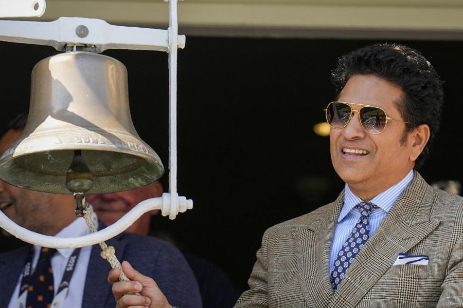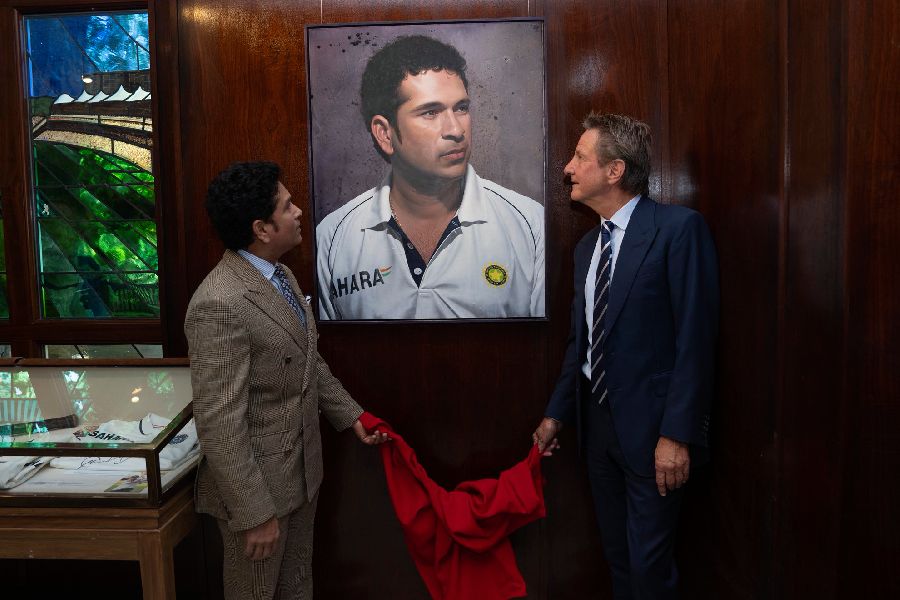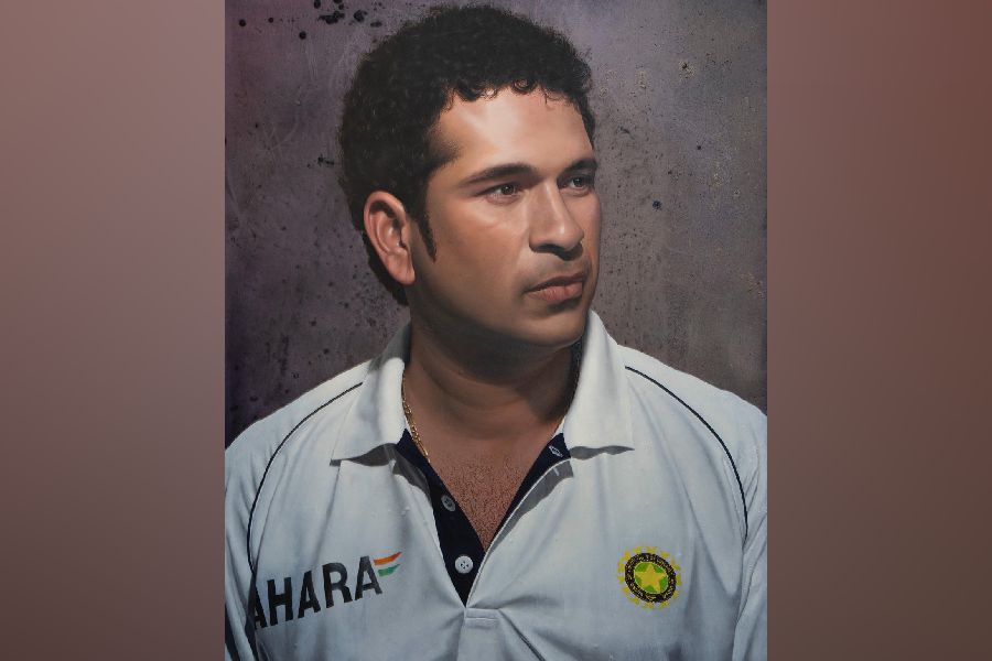 "Unlike the previous paintings, which were full-length, the portrait of Tendulkar is a larger-than-life image of his head and shoulders," the release added.