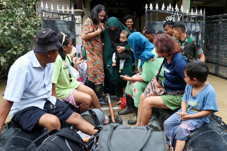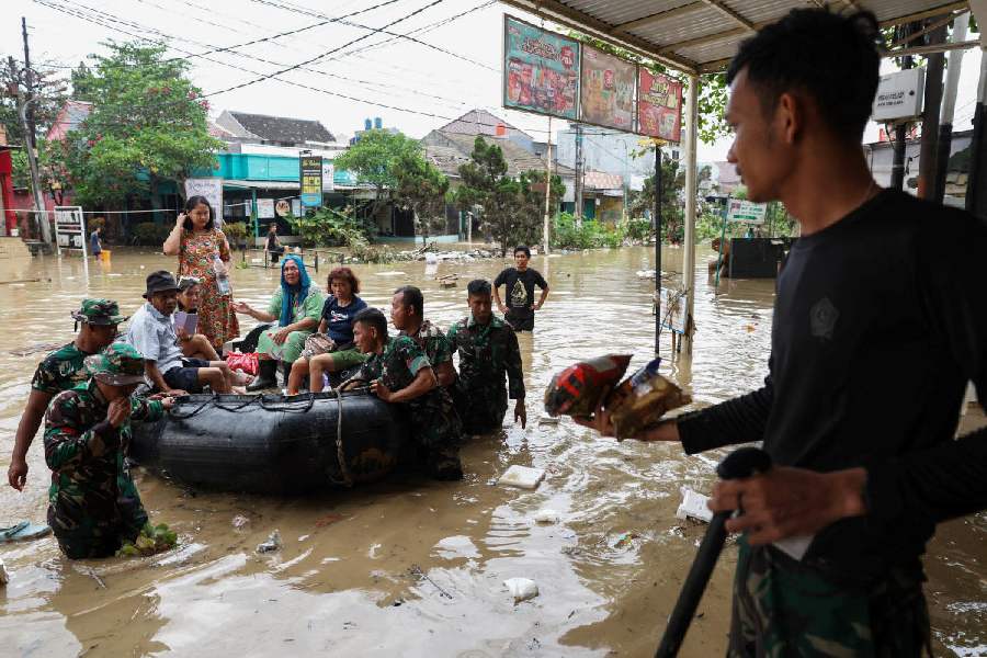 Rescuers on rubber boats sailed through thigh-high water to evacuate residents that had been trapped in floods since 4 a.m. (2100 GMT) at a housing complex in Bekasi, Reuters reporters said.