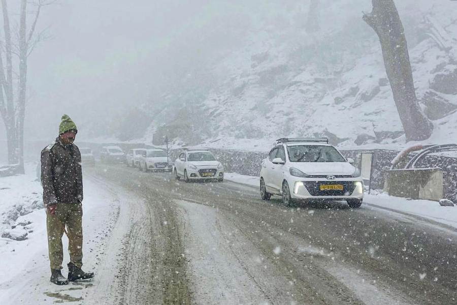 Dark convective clouds covered the sky through the day, reducing visibility in several areas. The upper hills of Manali, including the Atal Tunnel, saw light snowfall.