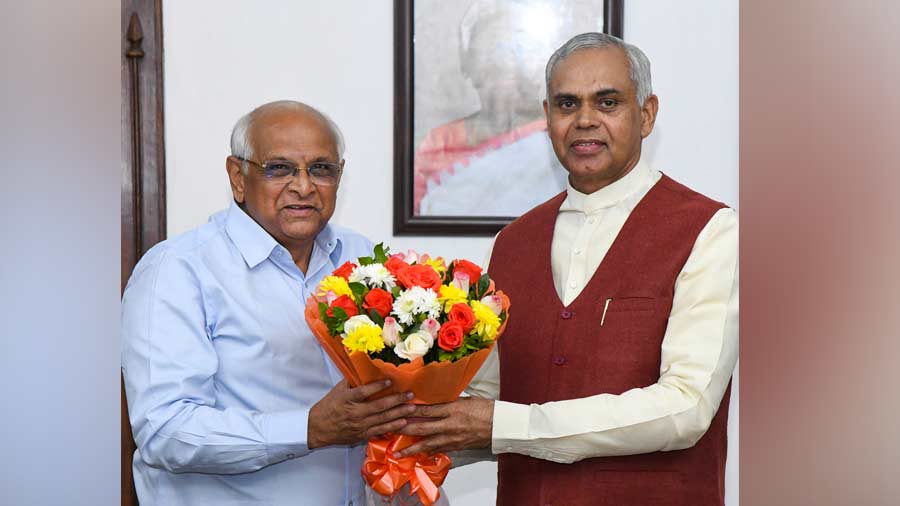 Gujarat caretaker Chief Minister Bhupendra Patel on Saturday met Governor Acharya Devvrat and staked a claim to form a government after he was elected as the leader of the BJP legislative party, two days after the party won a record mandate in the state elections.