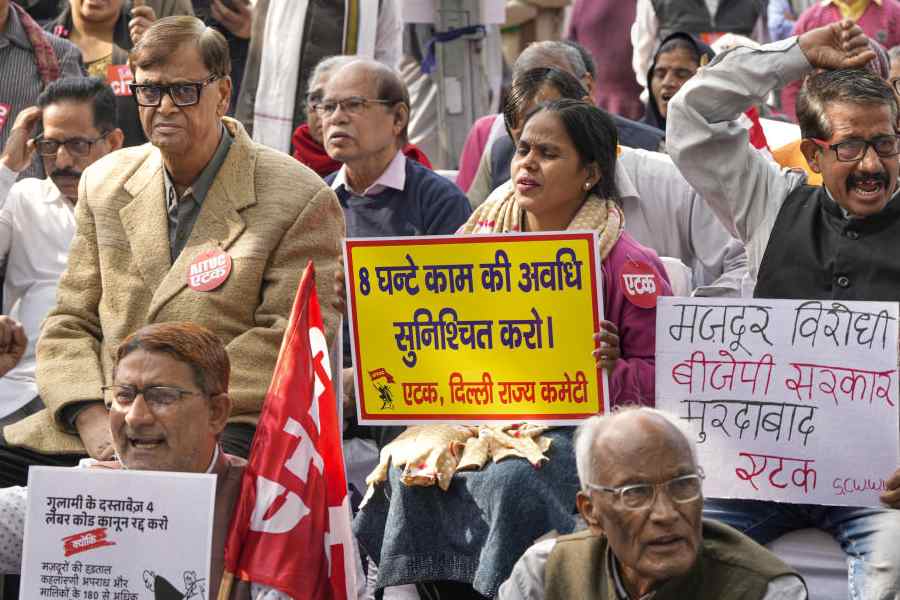 A joint forum of 10 central trade unions, the farmers’ collective Sanyukt Kisan Morcha (SKM), and the All India Power Engineers Federation (AIPEF) staged coordinated protests across the country on Wednesday, challenging the Modi government’s newly notified labour codes and demanding legal guarantees for Minimum Support Price (MSP), among other issues.