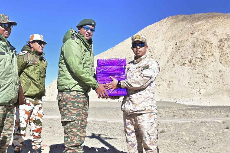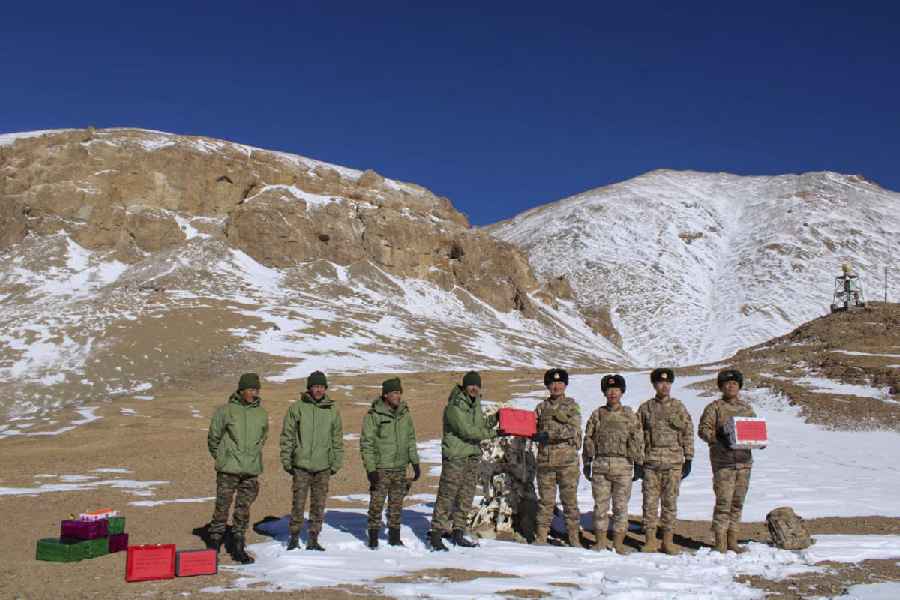 Indian and Chinese troops exchanged sweets at several points along the Line of Actual Control (LAC), including at locations in eastern Ladakh, to mark Diwali on Thursday, even as the Chinese defence ministry spokesperson declined to comment on whether the disengagement process had been completed.