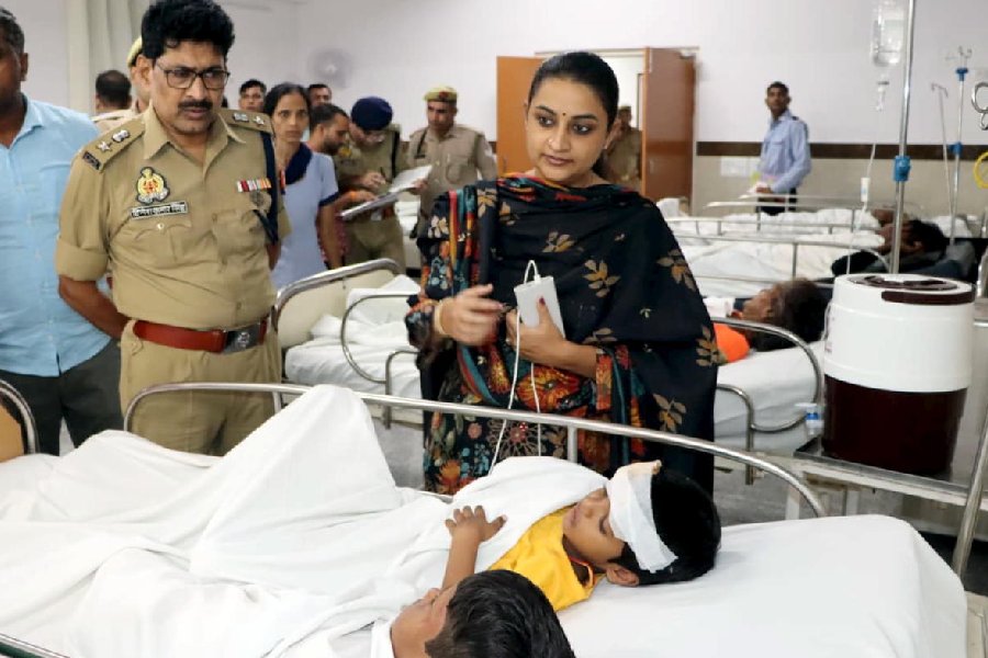 District Magistrate Shruti, along with SSP Singh and other senior officials, visited the spot amid drizzle and later interacted with the injured patients in a hospital.