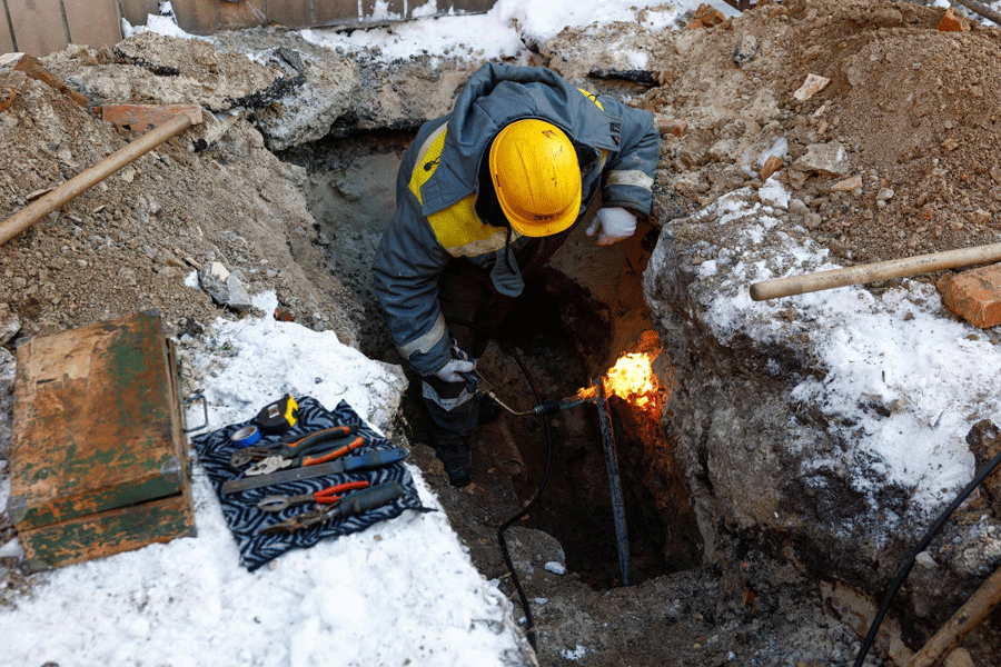 "There is a lot of work. The grids cannot withstand such pressure all at once," said Hennadii Barulin, 55, a digger operator, as his team worked to restore power to residents.