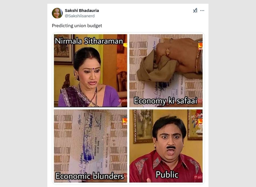 One meme showed a shocked Jethalal from Tarak Mehta ka ulta chashma, representing the public as the Budget could mean economic blunders.."Economy ki safai"