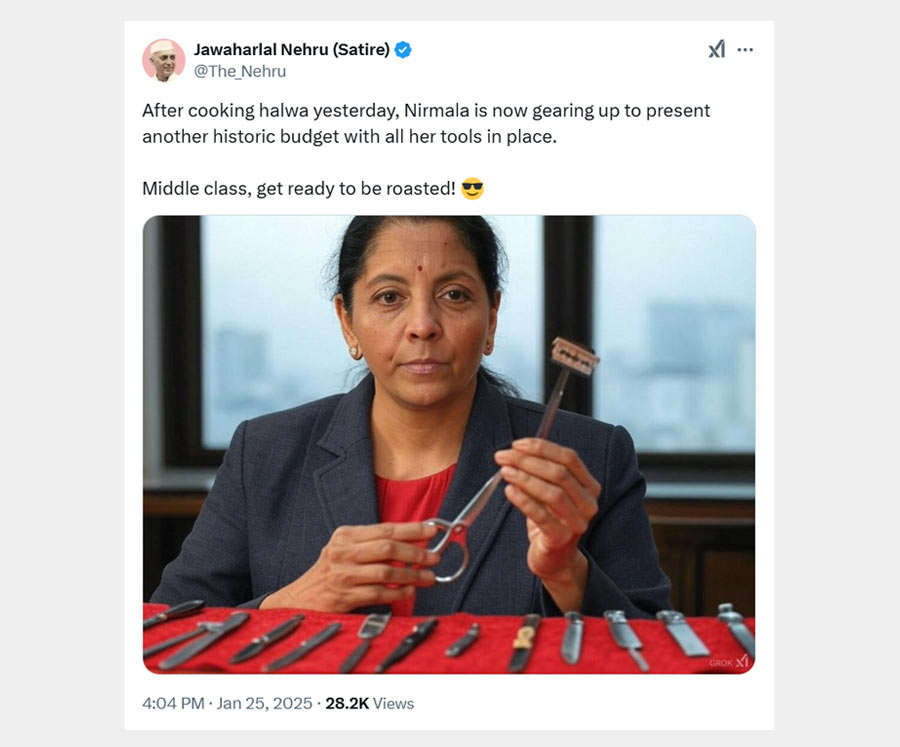An AI-generated meme showed Sitharaman equipped with scissors and blades, ready to “cut through” hopes of tax relief.