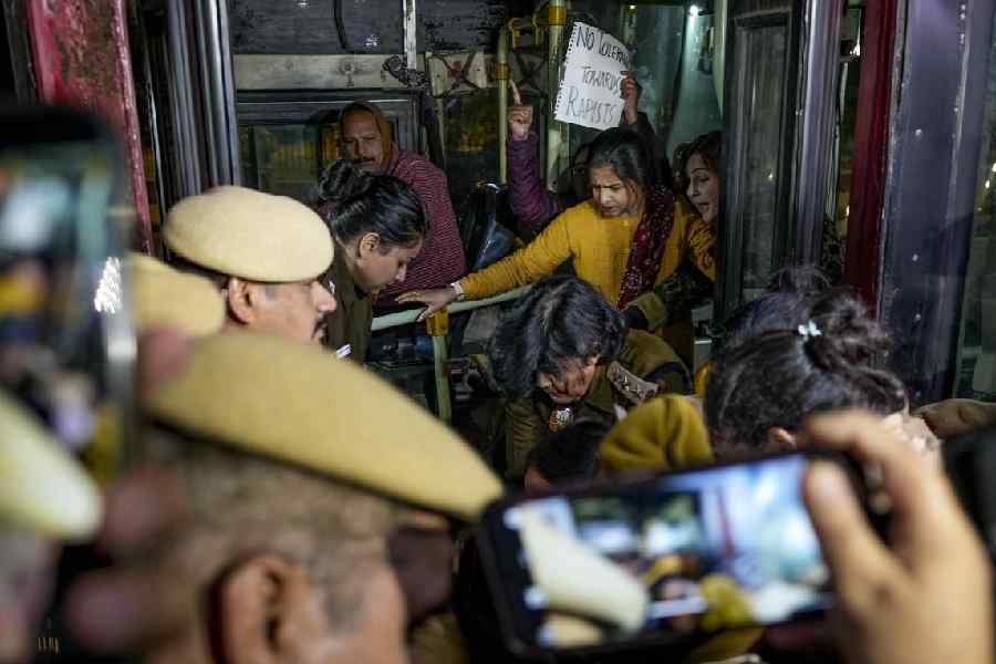 A police source said a woman was removed from the protest site as she was trying to enter the area with a placard in support of Sengar.