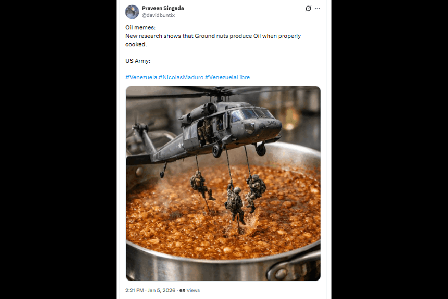 US President Donald Trump’s move to seize Venezuela’s oil reserves and capture Nicolás Maduro, declaring that the United States would ‘run’ the country until a ‘safe’ transition, has led to a flood of memes, crude jokes, and viral commentary on social media.