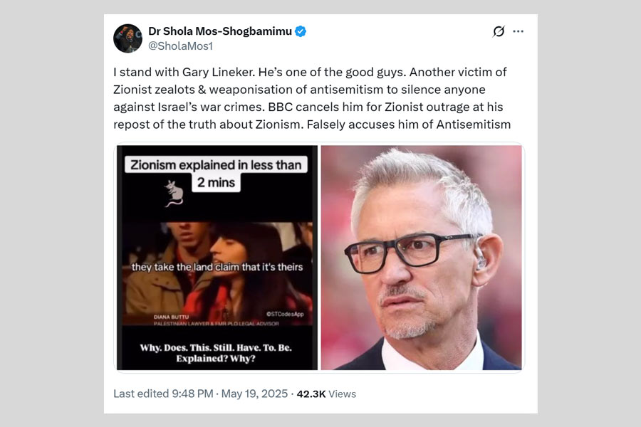 Lineker deleted the post soon after and issued a public apology, stating, “On Instagram I reposted material which I have since learned contained offensive references. I very much regret these references. I would never knowingly share anything antisemitic. It goes against everything I believe in.”