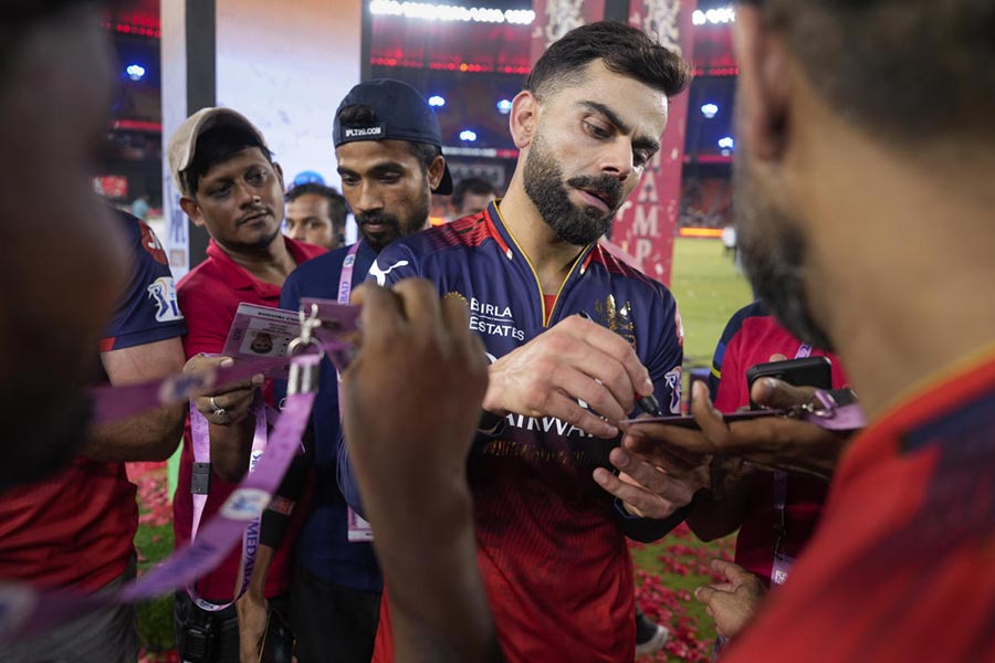 He's good with bat, but is probably great with the pen. After winning the IPL trophy for the first time in 18 years, Virat was swamped with fans asking for one autograph. Because not everyday you get THAT close to legends. So, some handwriting exercise there.