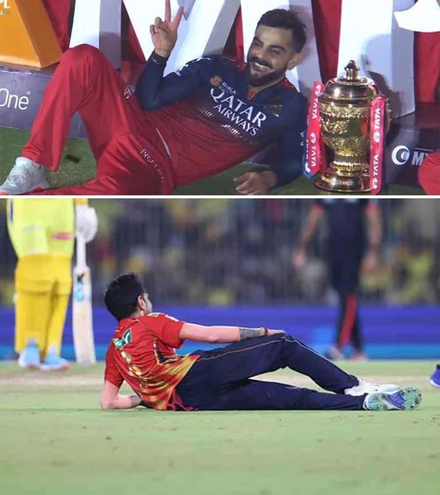 Shreyas Iyer can imitate Marcus Stoinis, and Virat can imitate whoever he wants, including Yuzvendra Chahal. Chahal's pose gained traction over the years, but Virat's posture with the trophy during the celebrations wins the 'Best Imitation Award' hands down.