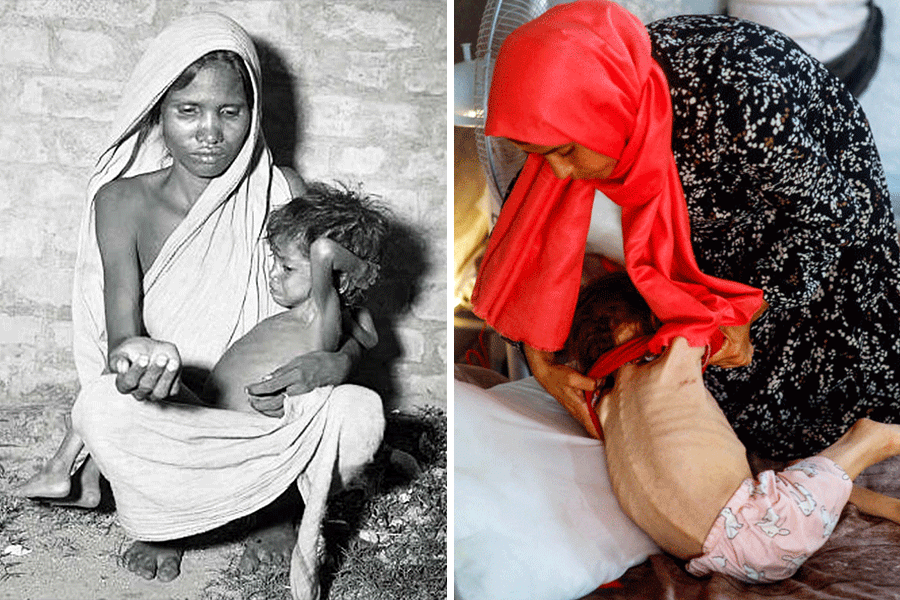 The haunting images from Gaza, of starving, sick, dying people, long queues lining up in the hope of a few grains of food, bear an eerie resemblance to the photographs we have seen of the Bengal famine. These scenes also remind of the drawings by artists like Chittaprosad Bhattacharya, Somenath Hore and Zainul Abedin, who witnessed the deaths first-hand.