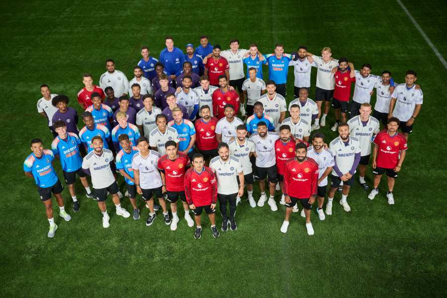 Adidas also shared images of cricketers and footballers striking poses that screamed Instagram gold: Gill with Bruno Fernandes, Siraj with Amad Diallo, and Jasprit Bumrah in deep discussion with Mason Mount and Maguire. A team photo featuring players and backroom staff from both squads capped off the camaraderie.